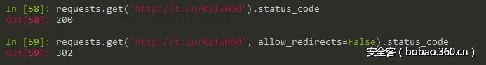 默认情况下,将会跟踪location指向的地址,所以返回的status code是最终访问的页面的状态码。而设置了allow_redirects的情况下,将会直接返回302状态码。