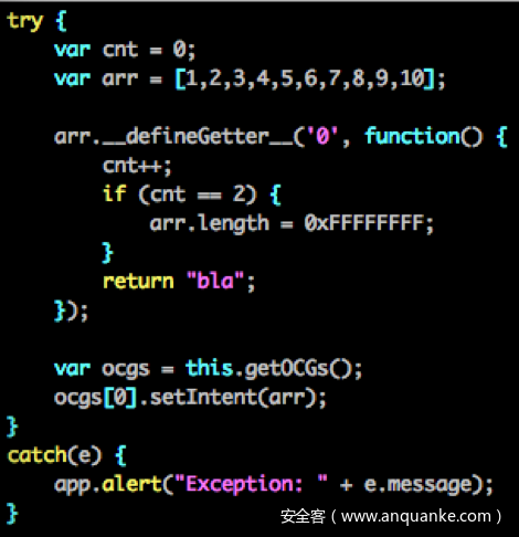 在这篇博文中,我将讨论我们通过程序ZDI-18-173收到的一个漏洞,它影响了setIntent可选内容组(OCG) JavaScript函数。这个漏洞很有趣,不仅是因为Adobe试图修补它的方式。我们接下来一起来看看吧!