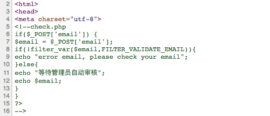 尝试提交邮箱,发现了代码泄露,给出了过滤方式: