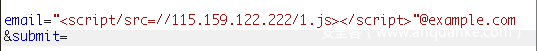 于是开始尝试在email处尝试xss,经过google,发现了几种绕过,尝试了一下,发现只要使用"poc"@qq.com类似的方法,就可以绕过过滤,然后构造xss的payload如下: