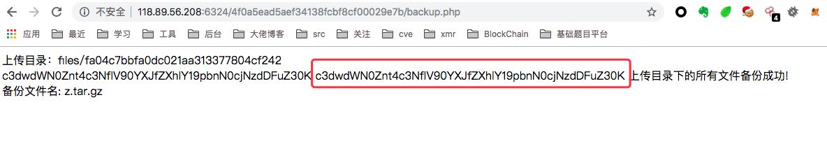 只要访问backup.php ,即可成功触发漏洞,获取flag