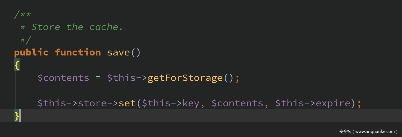 $this->getForStorage() 可控, 将要cache的内容转化成json格式