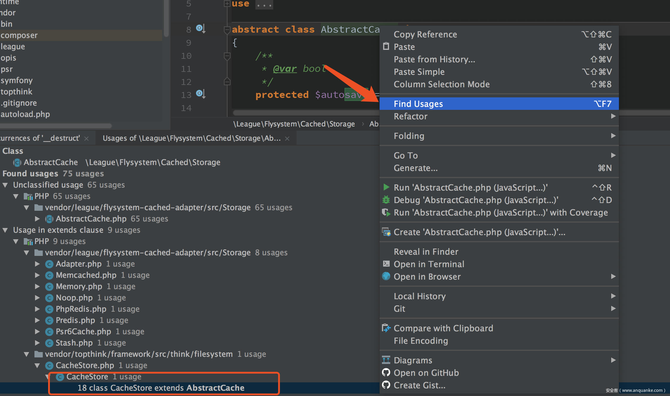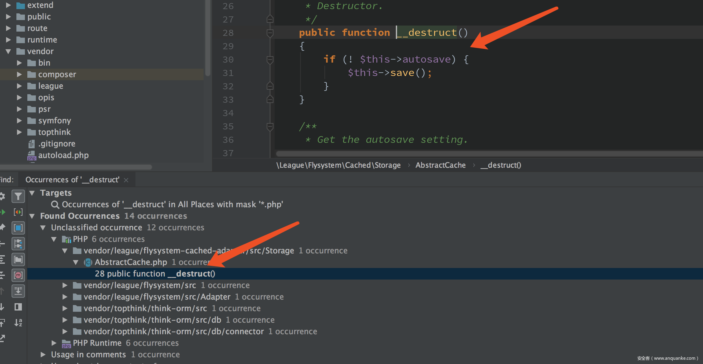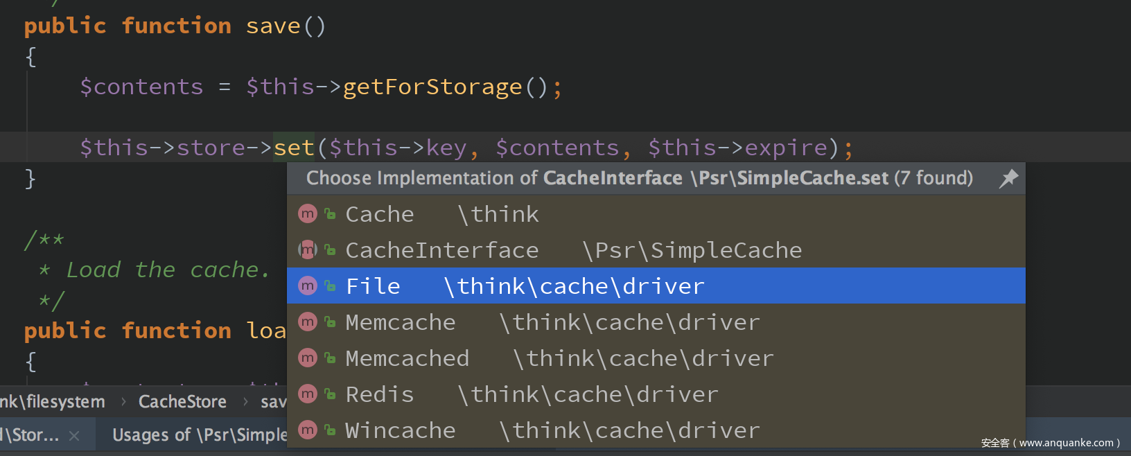 在__destruct中调用了$this->save() 接下来我们去找子类中哪些实现了save 方法