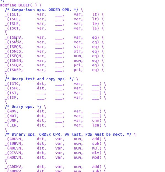 对比 lj_bc.h 中的 Opcode 定义一个一个改就可以了,ljd 默认是 2.1.0版本的,多的注释,少的加上。