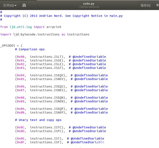 在 ljd 工具目录下 有两处代码引用了 Opcode 分别是 ljd/ljd/bytecode/instructions.py 和 ljd/ljd/rawdump/code/py