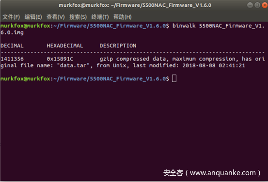 固件文件分析:解压后可获得 .img 系统镜像 binwalk 可直接解压出文件系统