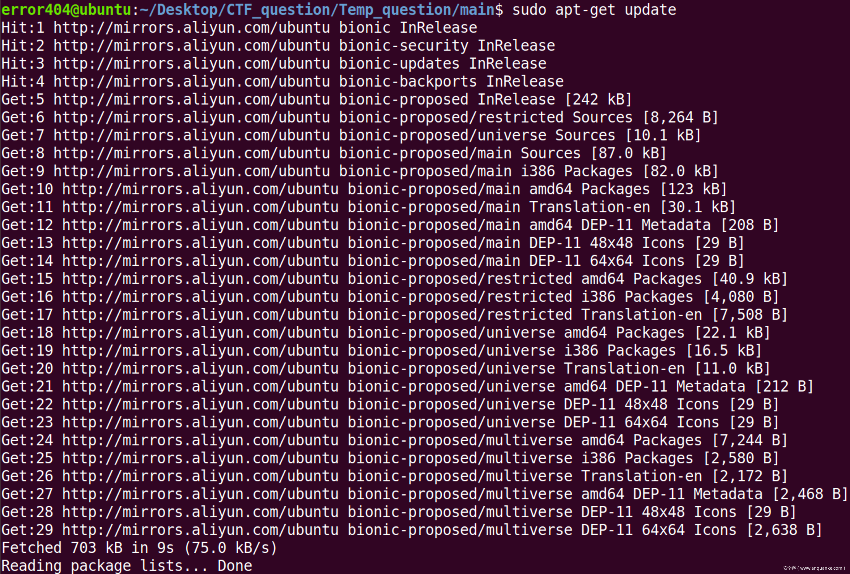 接下来运行sudo apt-get source libc6/bionic-proposed以获取目标源码