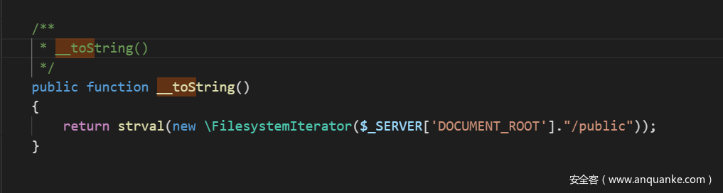 这里有一个比较撇脚的__toString()使用了FilesystemIterator,会输出该目录下的文件,输出第一个文件的名字,但是.axx.txt不出意外会被排在第一个文件,因此通过这个链来得到我们想要的key,既然可以调用静态的类方法,后面其实也就是重新跳到原来的链子上,直接贴exp吧,各位师傅还请见谅: