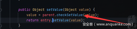进入checkSetValue()发现调用执行链,遂改变map值可以触发代码执行.