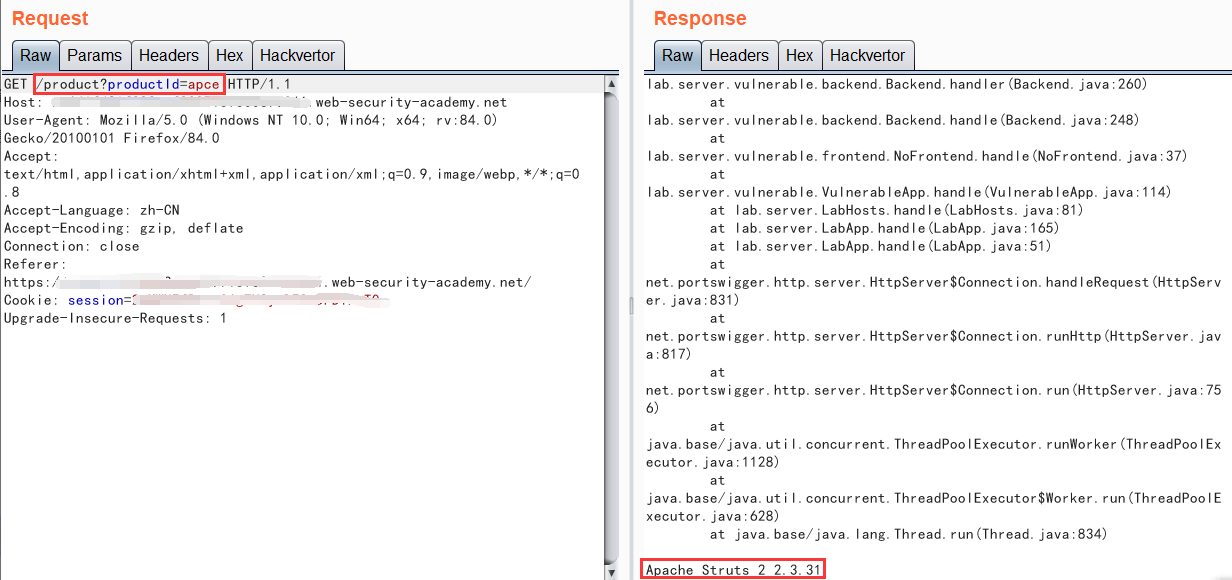 哦?我们看到不仅报错了,还告诉我们使用的中间件类型还有版本,有了这个版本号我们就可以对症下药去找相关的复现文章或利用工具了