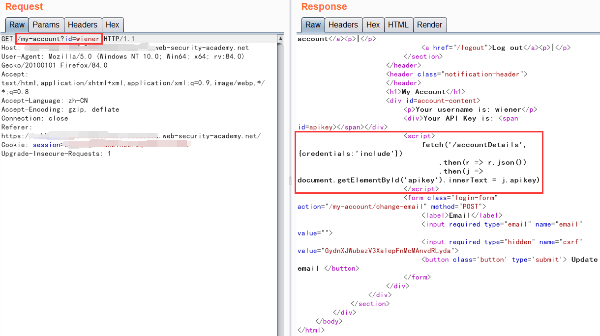在Exploit Server保存,投放给受害者后,我们就能获取到对方的apikey了