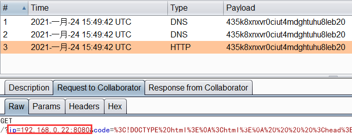 当主机存活时会向burp collaborator发送请求,我们检查一下接收端