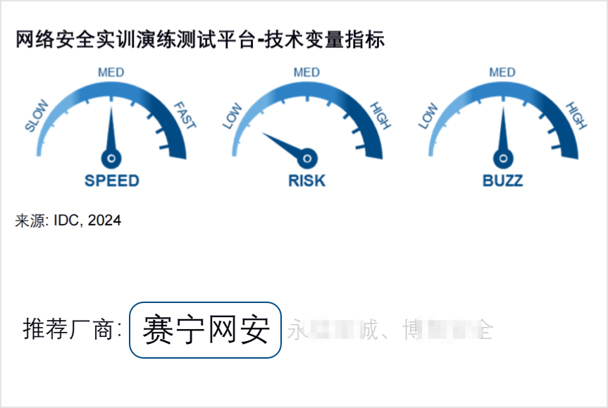 2024年10月,IDC TechScape首次发布《中国网络安全软件技术发展路线图》,在机会型科技趋势中提到网络安全靶场(网络安全实训演练测试平台),并将其标记为值得长期投入的产品类型。赛宁网安基于靶场行业的深厚积淀,成为IDC权威认可的网络安全靶场(网络安全实训演练测试平台)首个推荐厂商。多年深耕,赛宁网安积累了丰富的国内外靶场项目建设经验,并深度参与了用户方靶场的规划及标准制定,在下一代实用型靶场建设方面探索出可借鉴的实践路径和方案。