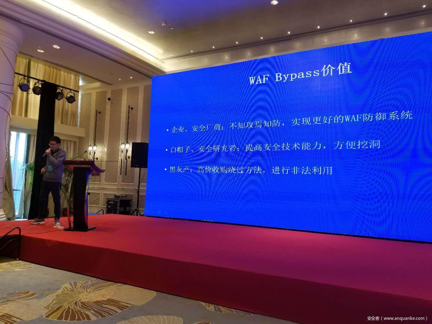 议题概述: 当前WAF已成为大多数网站必备的安全防护关口,web漏洞挖掘的必经之路便是先过WAF。本次分享将从规则防护的角度出发,和大家聊聊WAF测试中的一些方法和思路,从而达到绕过WAF防护的目的。
