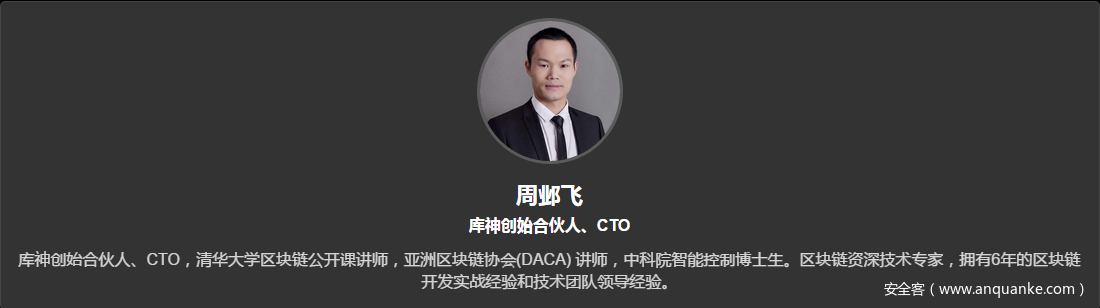 来自库神的创始合伙人,CTO周邺飞为大家讲解区块链相关安全问题,同时邀请大家参与硬件钱包的破解众测活动。
