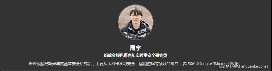 演讲嘉宾:周宇(蚂蚁金服巴斯光年实验室安全研究员)