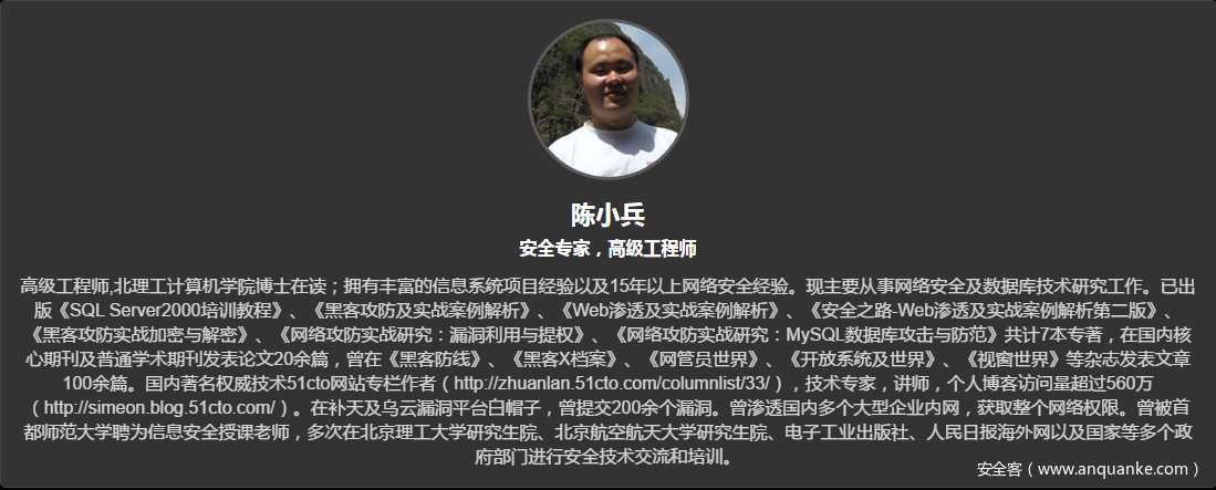 演讲嘉宾:陈小兵(红日攻防实验室安全专家,高级工程师)