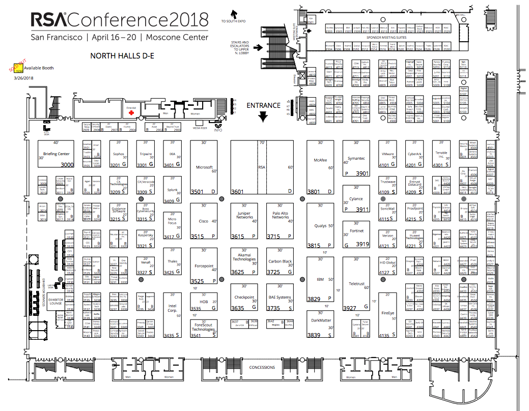 南展厅同样热门非凡,联邦调查局与国土安全部的展位就在这里。南展厅同样也驻扎着F5 Networks、Gemalto、Digicert、CrowdStrike、Endgame、Cofense、Synopys、Duo Security以及众多其它厂商。两个展厅都拥有众多供应商,因此想在短时间内游览一番绝非易事。为了帮助大家更高效地安排行程,我们立足EDR、CASB、EMM、防火墙, UEBA 以及SIEM等几大产品类别组织出一份“观光指南”。
