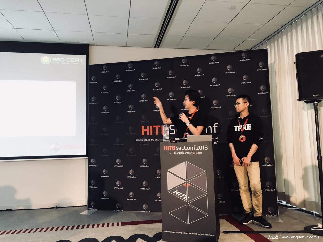 另外,除了本公司研究人员亮相世界前沿信息安全会议,360集团也加大对国内安全人才培养力度。此次HITB首次迎来了国内的“游学黑客”。去年在著名黑客破解大赛HackPwn中获得冠军的白帽黑客“三叶草小组”团队获得了前往HITB游学的机会,他们与世界顶级黑客面对面交流。“走出去”将对国内安全人才攻防水平提升有重要意义。