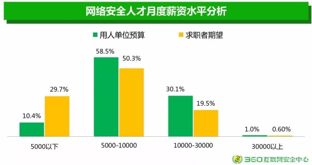 数据表明,当前我国信息系统和信息基础设施等重要行业需要网络空间安全人才70万,至2020年将急剧增加到140万。我国网络安全人才培养陷入困局亟待破解,而市场上现有的网络安全人才储备,不足以满足政企机构对相关岗位的实际技能需求,因此企业普遍希望通过提高薪资福利的方式,吸纳优质人才。