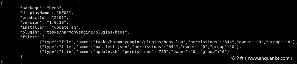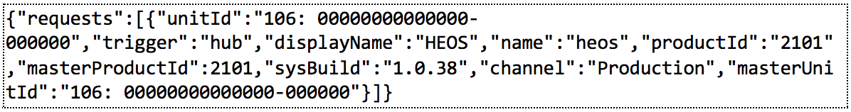 图11. 包含系统中“HEOS”软件包当前版本信息的JSON请求对象