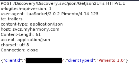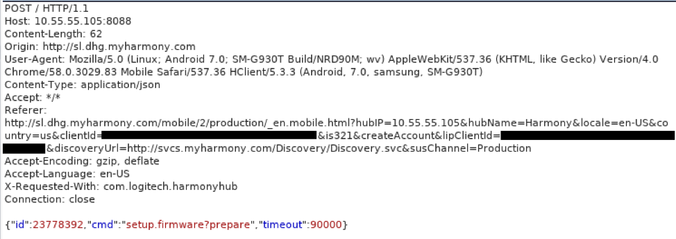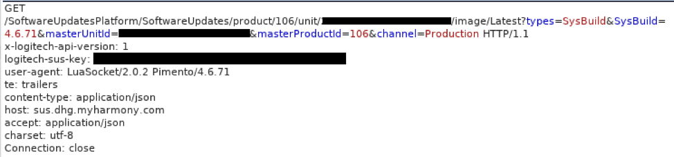 图2. 使Harmony Hub检查更新的请求报文
