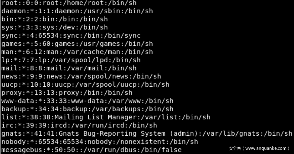 图7. /etc/passwd文件显示root用户未设置密码
