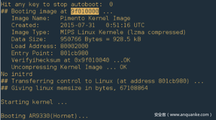 图1. 从UART接口获得的启动日志