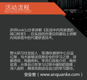 议题《实战中内网渗透的端口转发》所属杨天意老师的《代理穿透》课程系列之一,聚焦于目前火热的渗透测试中,最难的内网渗透领域中。在本课中,我们将学习代理穿透的相关知识,理解在内网中搭建自己的代理服务穿透内网,如何使用lcx进行端口转发,如何使用代理神器proxifier与reGeorg进行配合,如何利用ssh隧道进行代理,如何利用渗透框架metasploit的socks模块,如何熟练使用ProxyChains在linux下代理指定应用。最后还会提到burp suite如何在已经配置了socks代理的情况下进行拦截抓包。