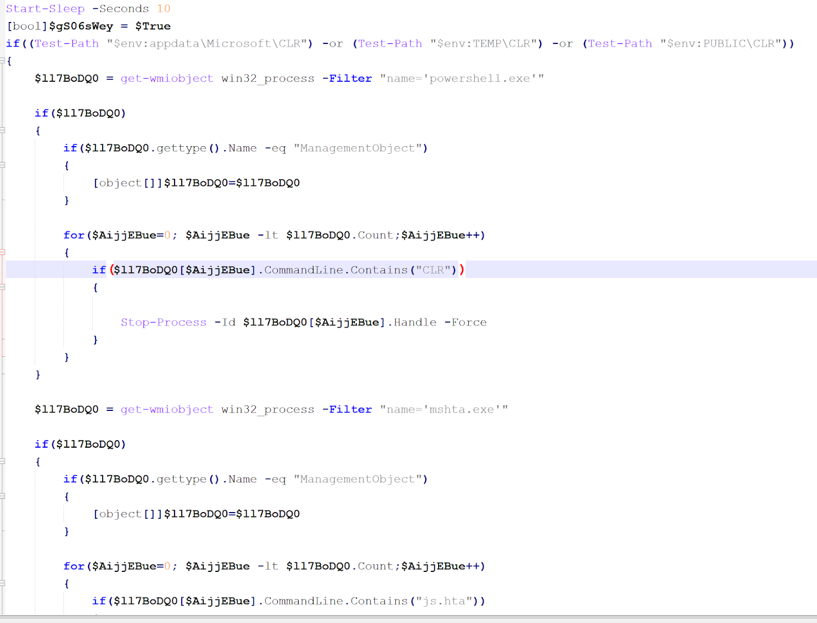 此代码仍然包含经过编码后的数据块。其中有两个有趣的部分,是Invoker.ps1和js.hta。