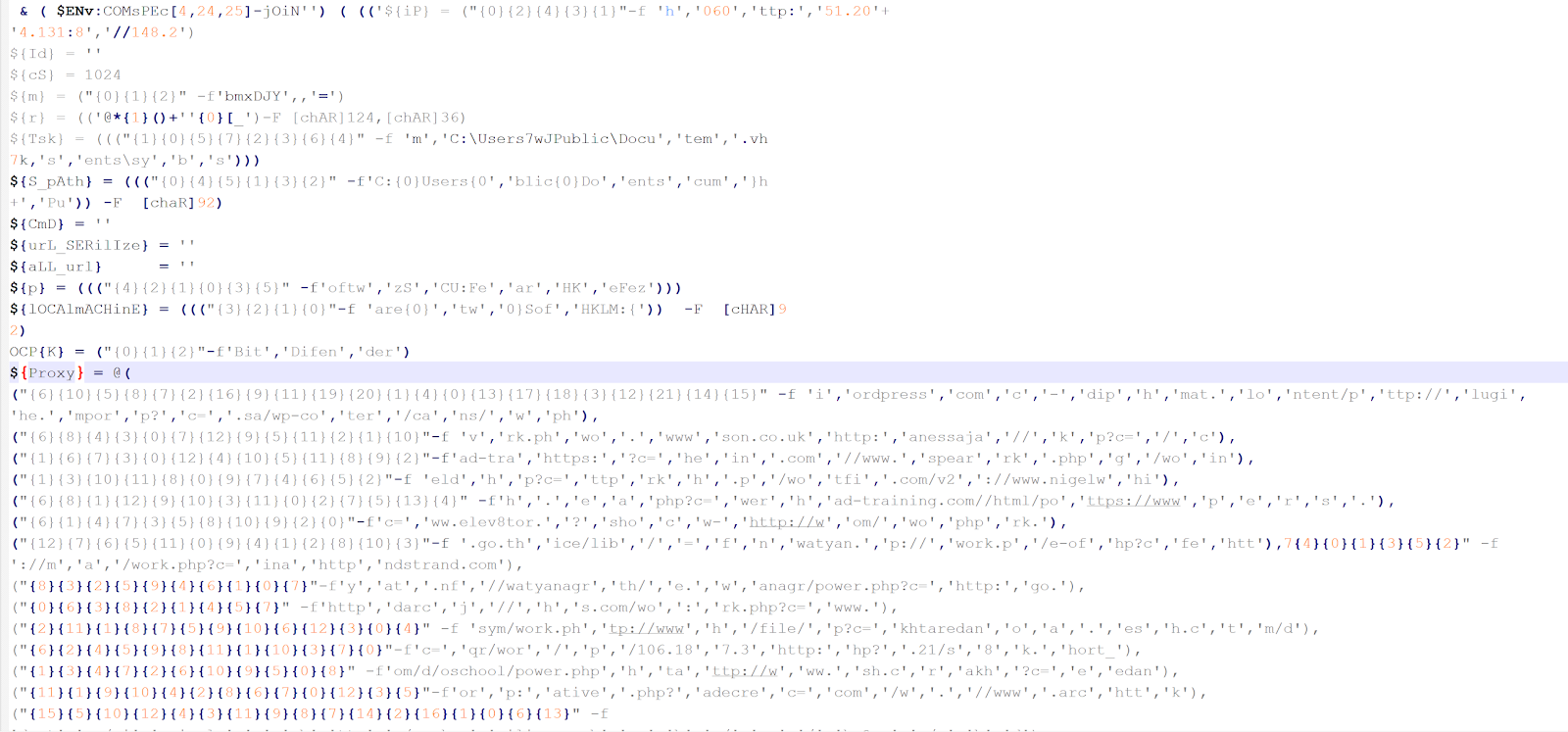 他们之所以怀疑该样本可能与MuddyWater相关,是因为其诱导方式与之具有相似之处,另外其中某些PowerShell的混淆也有相似之处,特别是字符替换例程。
