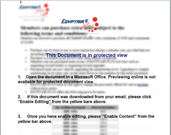 我们所分析的新样本,是一个名为“Egyptairplus.doc”的Word文档,其中包含宏,该文档的MD5为fdb4b4520034be269a65cfaee555c52e。在宏代码中,包含一个名为worker()的函数,该函数会调用嵌入在文档中的多个其他函数,以最终运行PowerShell命令: