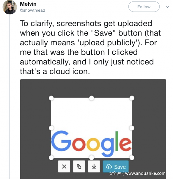 只有当用户点击“保存”按钮时这些截屏才会被发送至公共服务器。然而,很多用户可能一直在这么做但并未意识到截屏实际上被发送到云。