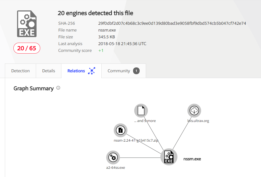 通过VT关联分析,该样本原始文件名是nssm.exe,设涉及大量的样本
