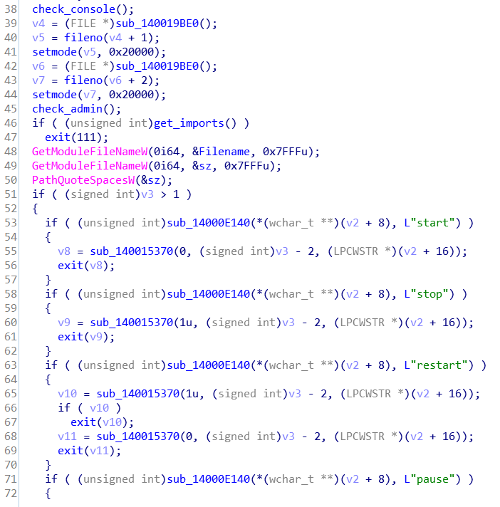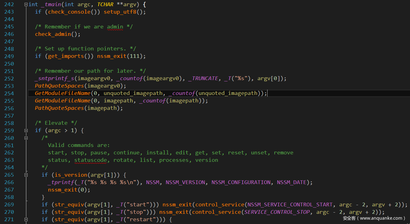 分析样本最后发现svchost.exe是基于NSSM编写的,样本中的主函数wmain位置代码: