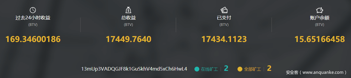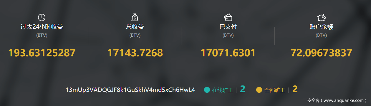 截至两次分析时间,该挖矿样本对应的钱包信息如下: