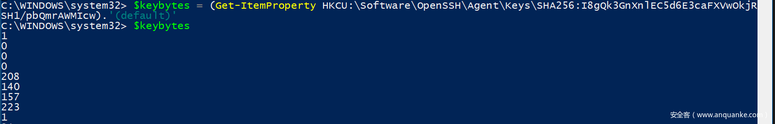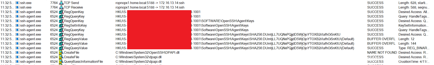 根据这些信息,我知道系统将受保护的某些数据存储到注册表中并进行读取,并且ssh-agent使用的是微软的Data Protection API.aspx)。