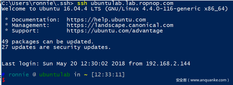 最后,将公钥加入系统的Ubuntu环境中后,我发现用户可以在不解密密钥的前提下从Windows 10登录SSH(这是因为ssh-agent已经在后台替我们处理了这些流程):