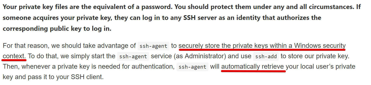 我在MSDN上找到了关于Windows ssh-agent的一些参考资料,其中这部分内容引起了我的注意: