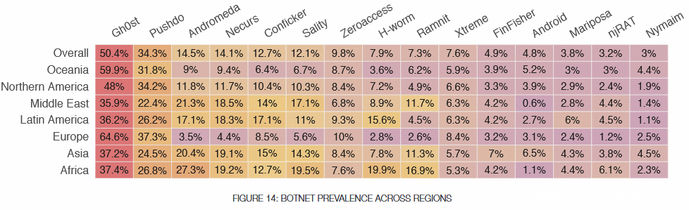 Fortinet 公布的数据涵盖针对桌面、移动、服务器、物联网和网络设备等的所有僵尸网络类型信息。