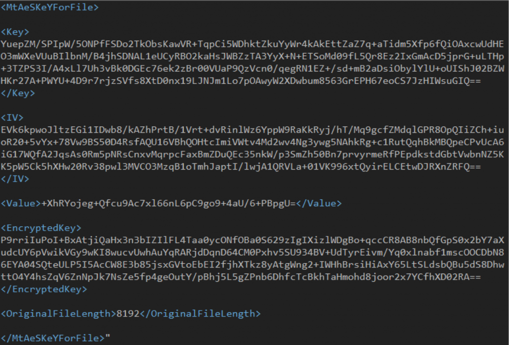 <EncryptedKey>:包含64字节签名秘钥,该签名秘钥是随机生成的,以相同方式加密和编码</Encrypted>