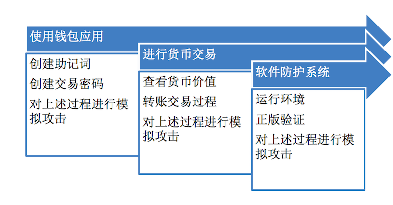 我们对目前热门的近二十款钱包APP进行了安全分析,从应用运行开始,创建助记词、备份数据、查看货币价值到进行交易,如下图我们的模拟攻击流程。