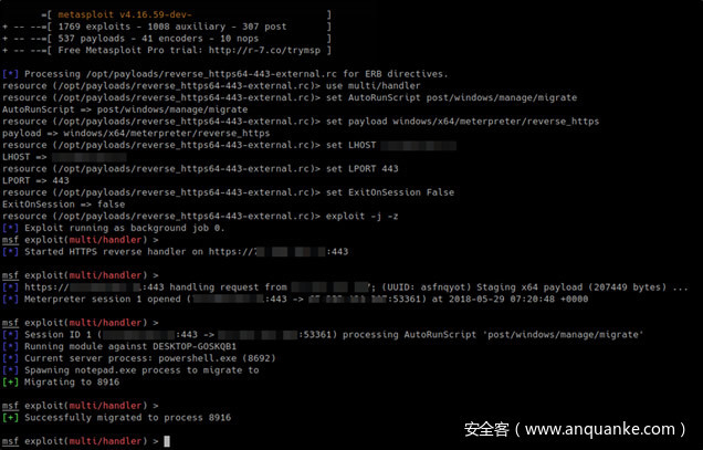 Defender被成功绕过并建立了一个Meterpreter会话: