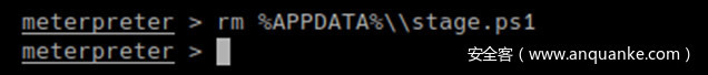 请注意,要使此攻击成功,需要手动删除执行的Meterpreter PowerShell脚本。cert.cer文件将自动被删除,但您需要在Meterpreter会话中删除stage.ps1通过以下操作: